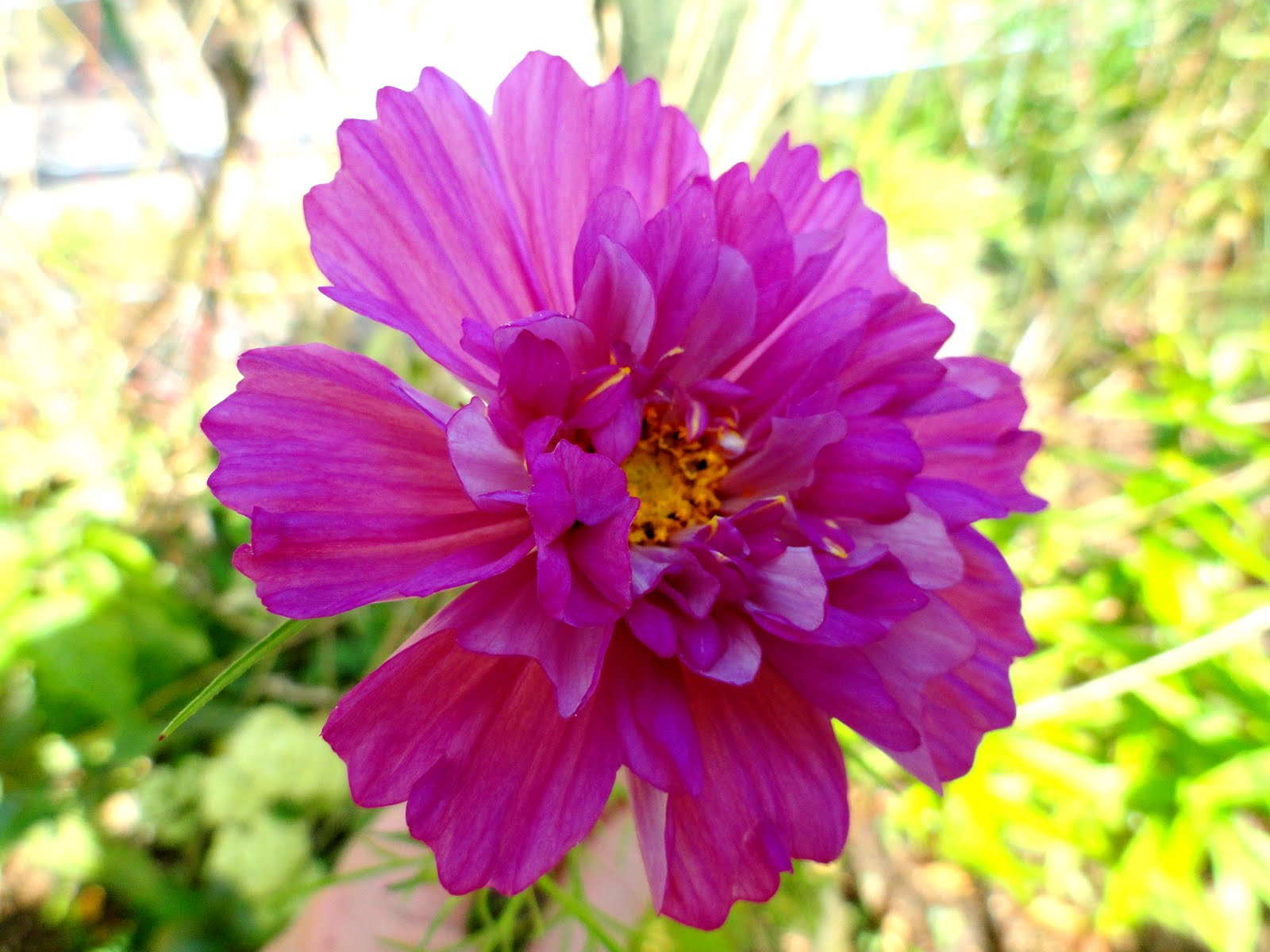 Här finns också en ljusrosa dahlia, lite sommarastrar och krasse.